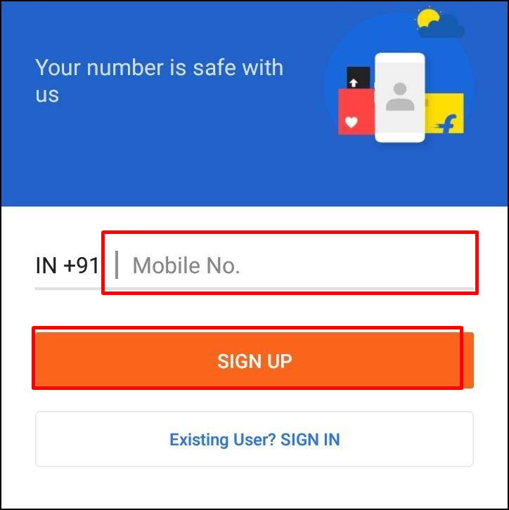 - Flipkart app ओपन करके सबसे पहले आपको Flipkart app पर Signup करना होगा।