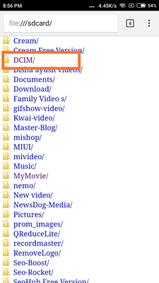 - .आपके सामने फाइल Maneger की अन्दर की सारे फोल्डर की लिस्ट आ जायेगी आपको जिस भी फोल्डर की फोटो,विडियो ,Images,Documents देखनी हो .उस फोल्डर पर क्लिक करे .जैसे मैंने यहाँ पर DCIM Folder का चुनाव करके Camera फोल्डर को चुना है .(आप स्क्रीनशॉट में देख सकते है .)
