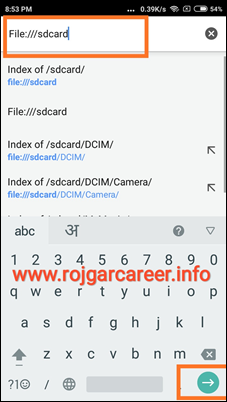 - Google Chrome Browser ओपन करने के बाद Google Chrome के Search Bar में ठीक इस तरह File:///sdcard/ टाइप कर के Go पर click कर दे (स्क्रीनशॉट देखे)