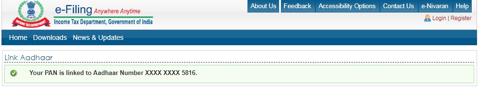 • अगर आपका पैन कार्ड,आधार कार्ड से पहले ही लिंक होगा तो यहाँ पर आपको Already Link का नोटिफिकेशन दिखायेगा।