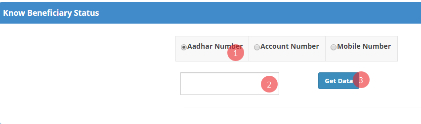 - नए पेज पर आधार नंबर, बैंक खाता संख्या या मोबाइल नंबर में से किसी एक विकल्प को चुनिए। इन तीन नंबरों के जरिए आप चेक कर सकते हैं कि आपके अकाउंट में पैसे आए या नहीं।