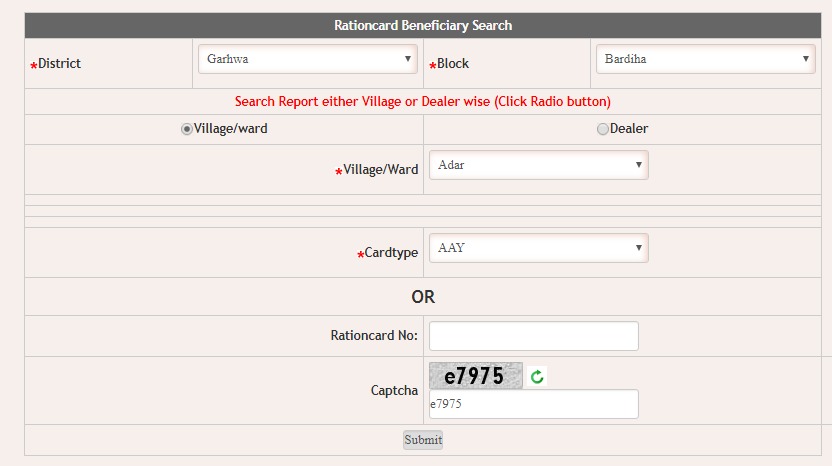 - यहाँ ध्यान दे अगर आपको राशन कार्ड number आपको मालूम है तो राशन कार्ड number डालकर सर्च कर सकते है . नही तो कोई बात नही .