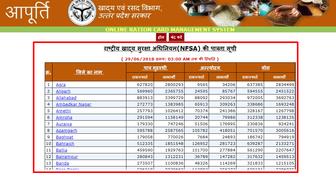 - आपके सामने एक नया पेज खुलेगा जहा पर उत्तर प्रदेश के सभी जिलों की लिस्ट होगी आपको आपको अपना जिला चुनना है